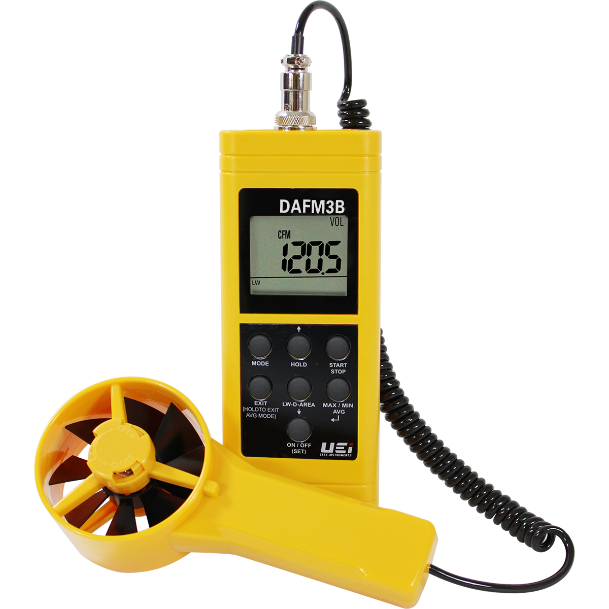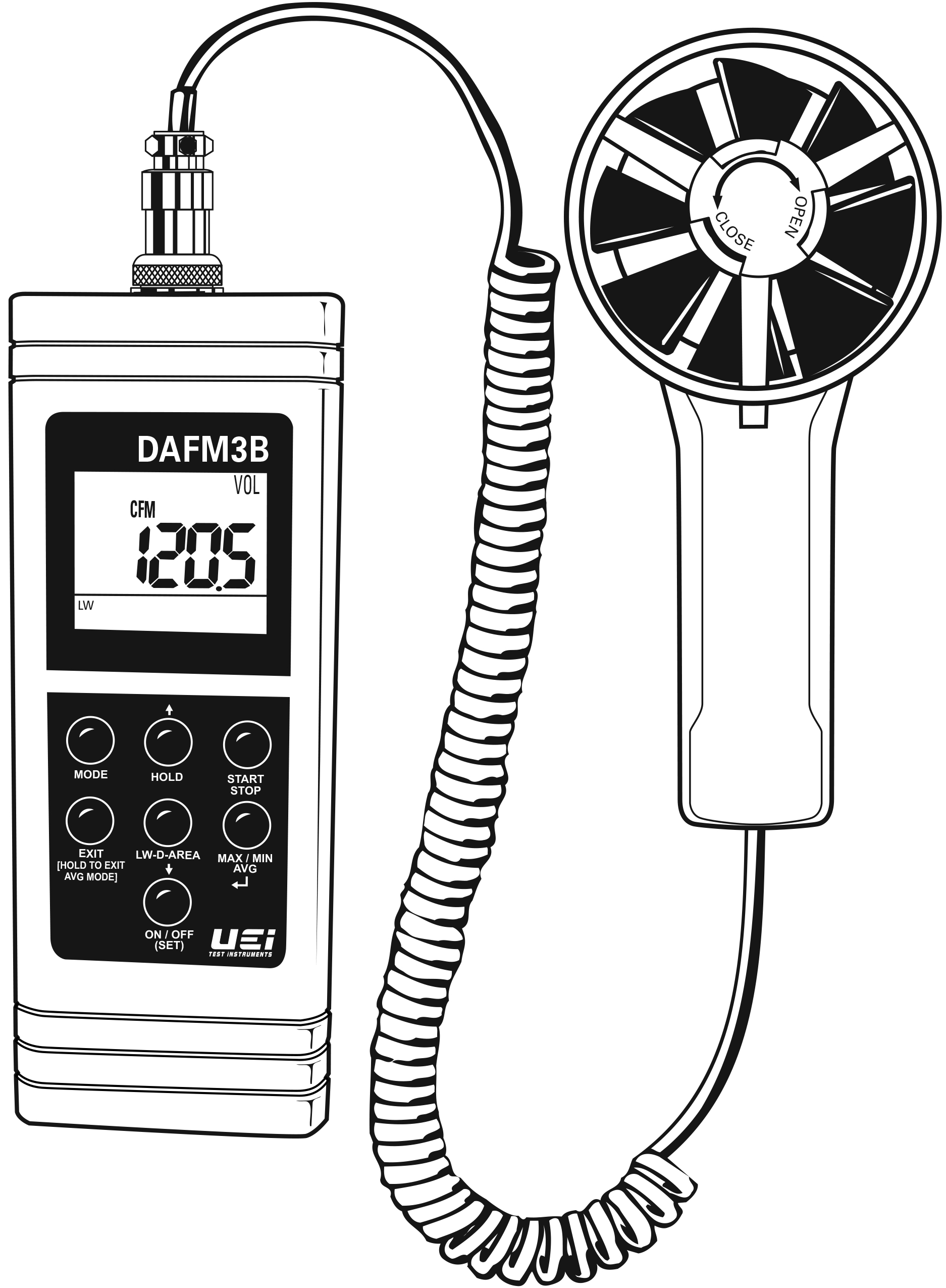 The UEi DAFM3B is a digital anemometer/psychrometer designed with 6 HVAC/R must have parameters in one instrument.
